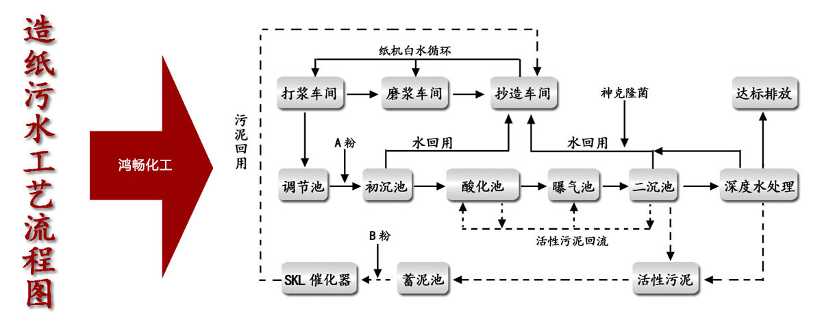 造纸污水处理 近年来,我国造纸技术日益发展的同时,由于造纸工业用水量大,每供应一吨纸需要消耗上百立方米的水,亦是工业废水的产生大户,在水资源日益紧缺的状况下,对造纸废水的回收利用越来越有必要。在造纸废水处理过程中,黑液、打浆污水、白水是关键环节。 造纸黑液的处理是造纸业废水处理的关键,目前,常用的造纸黑液处理技术有碱回收法、絮凝沉淀法。 打浆污水 :纸浆经过打浆机排出的污水,其所含成分与黑液相同,只不过浓度较低。由于所含的有机物质(纤维和碱等)数量少,回收较困难,但污水 中的总固体、悬浮物和BOD5仍然很高,直接排放对水体污染仍很严重,因此需要进行处理。主要处理方法包括混凝沉淀法。 |
